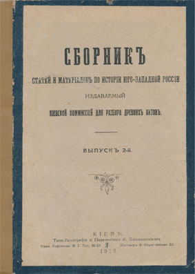 СБОРНИК СТАТЕЙ И МАТЕРИАЛОВ ПO ИСТОРИИ ЮГО-ЗАПАДНОЙ РОССИИ (