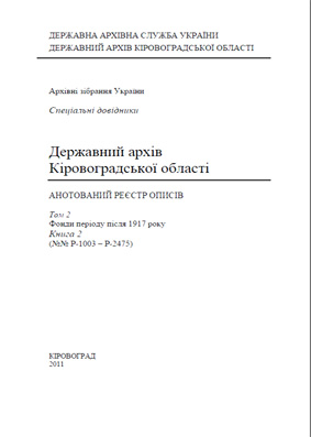 У першій книзі другого тому довідника представлено відомості про склад і зміст частини фондів Державного архіву Кіровоградської області періоду після 1917 року.